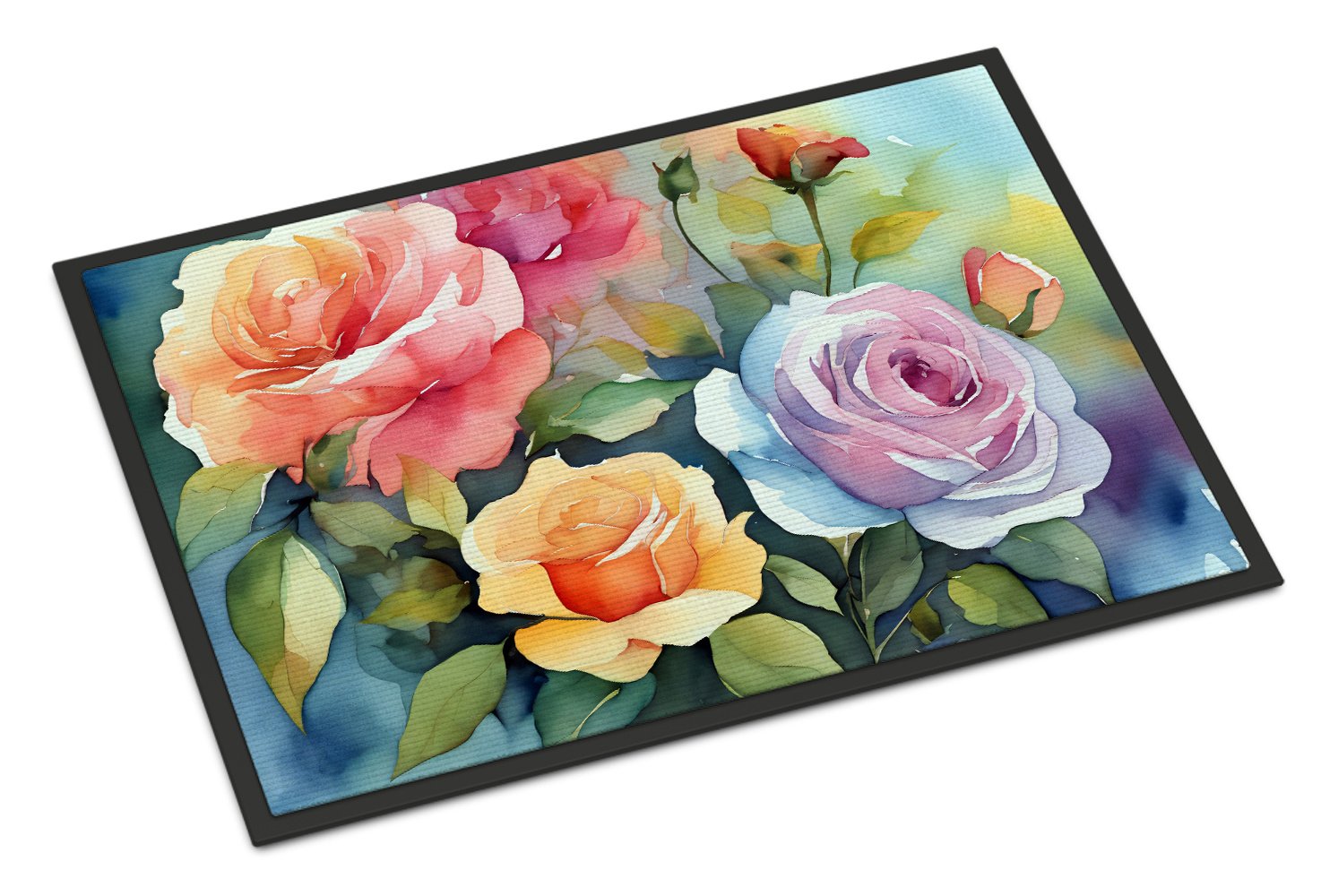 Home > New Rose Watercolor Mat Indoor - Outdoor Rug, Entryway, Non Slip, Washable Low Pile, 18H X 27W