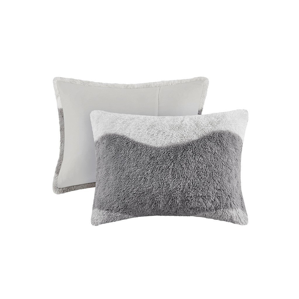 The Cassie shaggy faux fur comforter set showcases a unique, tonal wave striped pattern for an ombre look, and reverses to a soft grey color. This cozy comforter adds a fun and modern update to your bedroom, while coordinating shams (1 in Twin/Twin XL) complete the bedding set. The hypoallergenic polyester comforter filling contains no allergens and is treated to be dustproof. Sham set will vary in ombre colors. This machine washable comforter set is also OEKO-TEX certified, featuring an antimicrobial treatment on the reverse, which keeps the bedding fresher longer.