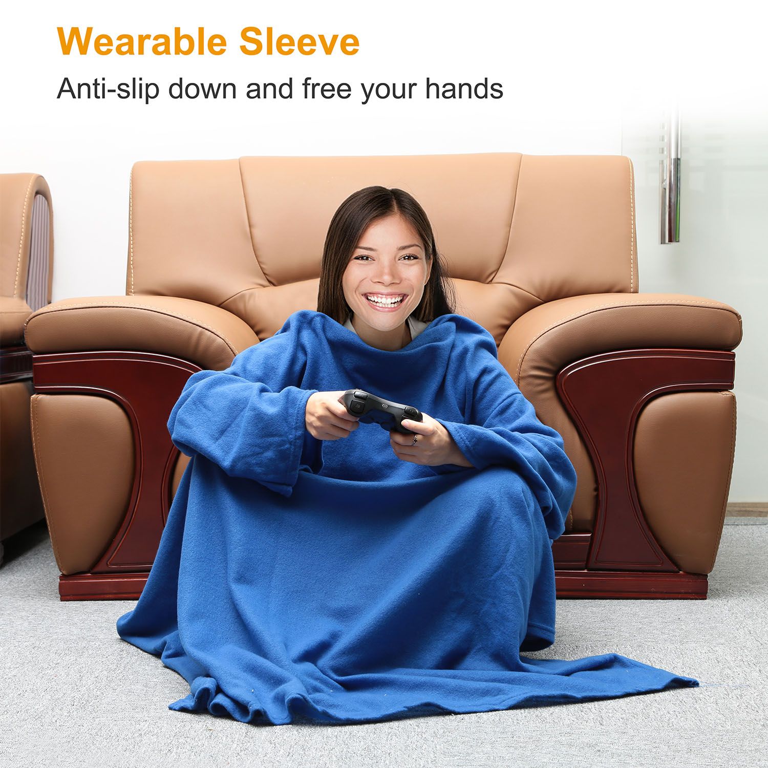 *User-Friendly Wearable Sleeved Blanket Design*:Adopting wearable sleeved design; our blanket will not slip down from your shoulder easily and meantime allow your hands to freely use mobile phone; book; laptop; cup; etc. Our sleeved blankets keeps you warm from head to toe while allowing complete freedom of movement.
