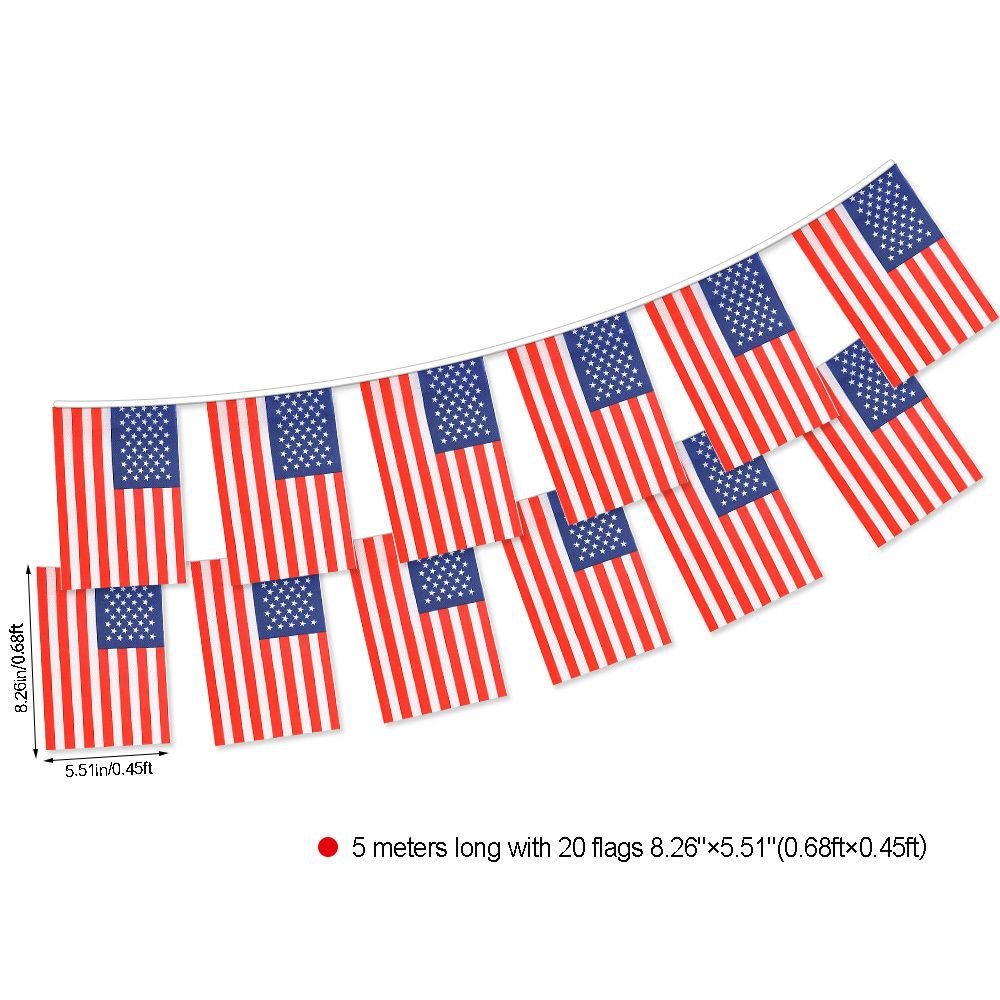 [The Banner American Flag Size] 8.26inches × 5.51inches(0.68ft×0.45ft) 5 Meters Long With 20 Flags 10 Meters Long With 30 Flags