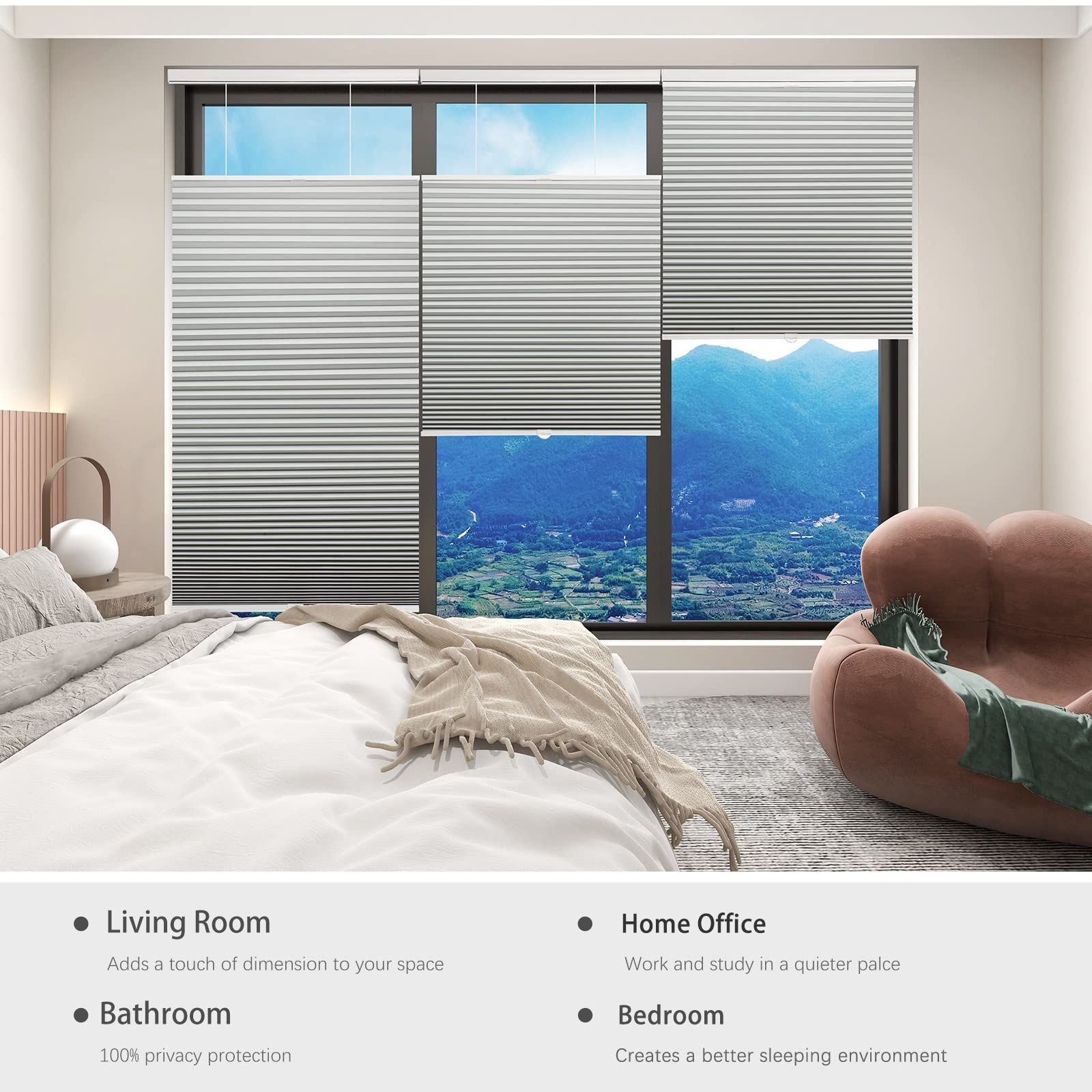1.WELLSOURCE Blackout Cellular Shades Cordless, Top Down Bottom Up Blinds for Windows, 1.5" Single Cell Pleated Honeycomb Window Shades for Bedroom, Child Room