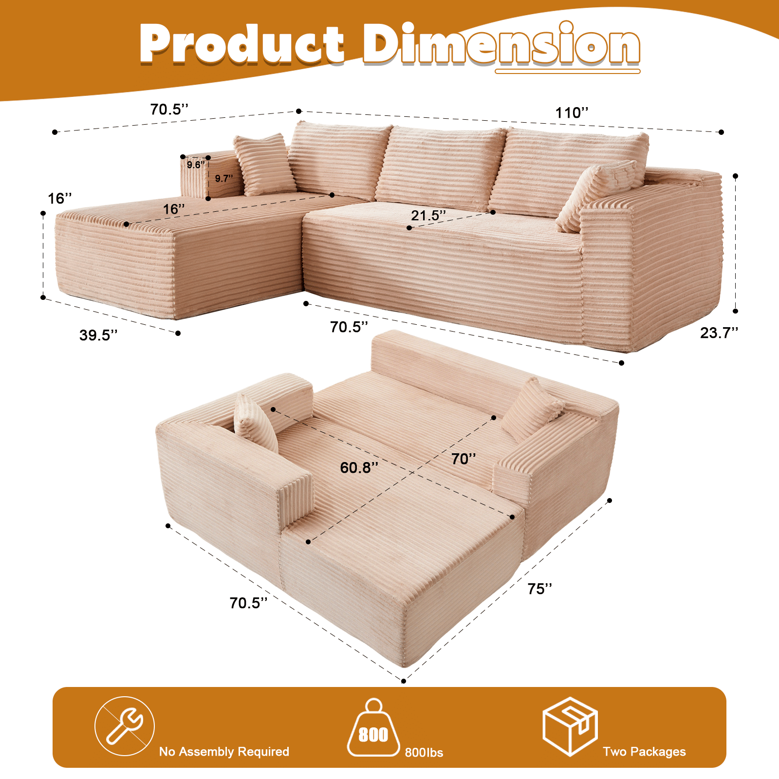 Compression Sectional Couch with Comfy Chaise, Boneless L Shape Sofa with Deep Seat Compression Sectional Couch with Comfy Chaise, Boneless L Shape Sofa with Deep Seat Compression Sectional Couch with Comfy Chaise, Boneless L Shape Sofa with Deep Seat