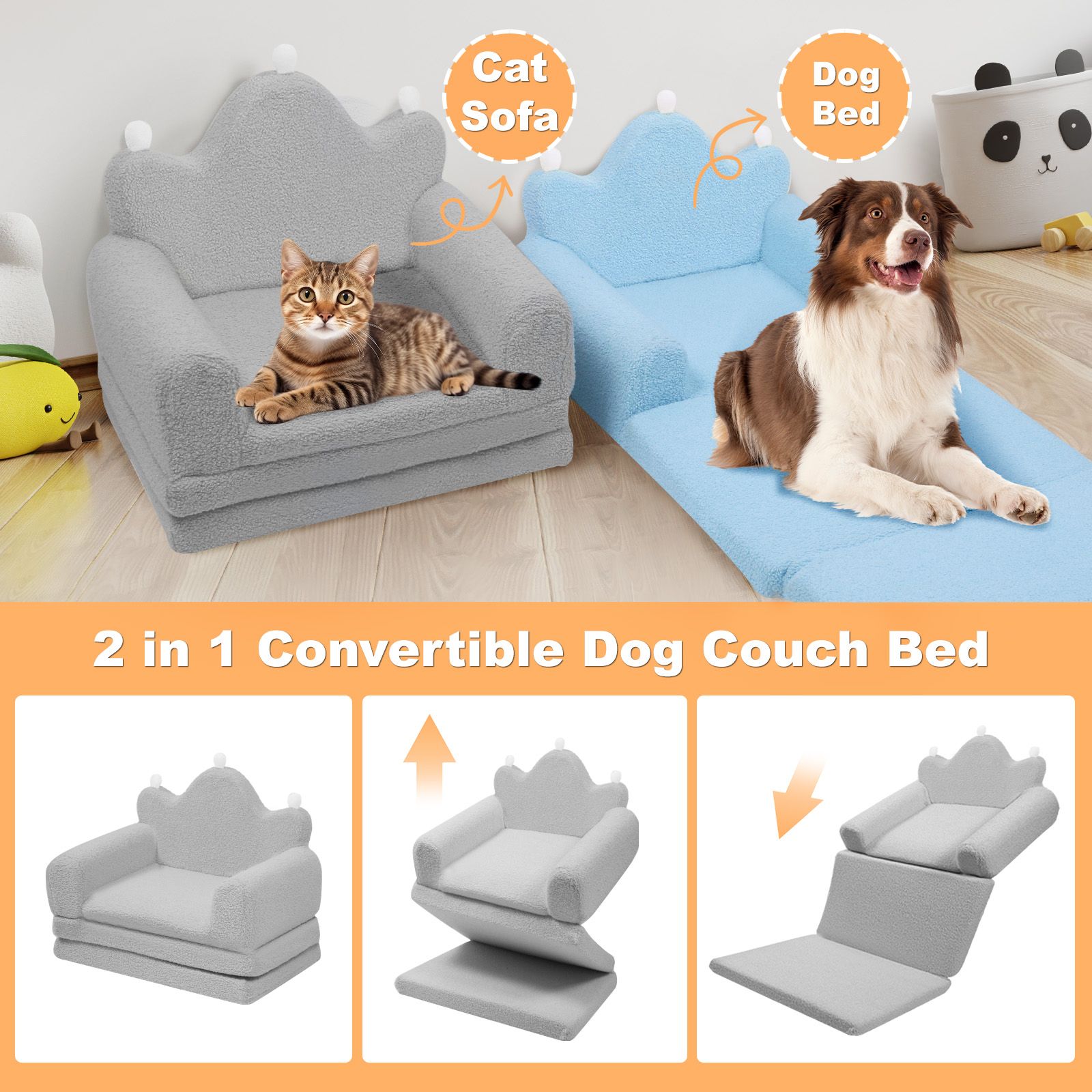 Tiara-Shaped Convertible Dog Bed And Sofa - 22.8"×18.8"×15.7" - 2-in-1 Luxurious Pet Bed With Plush Cushion And Machine-Washable Cover