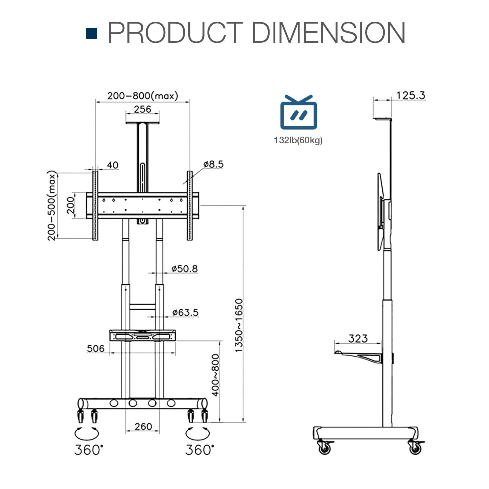 Heavy-duty construction and durable materials, the TV cart can meet quality of UL Certification.