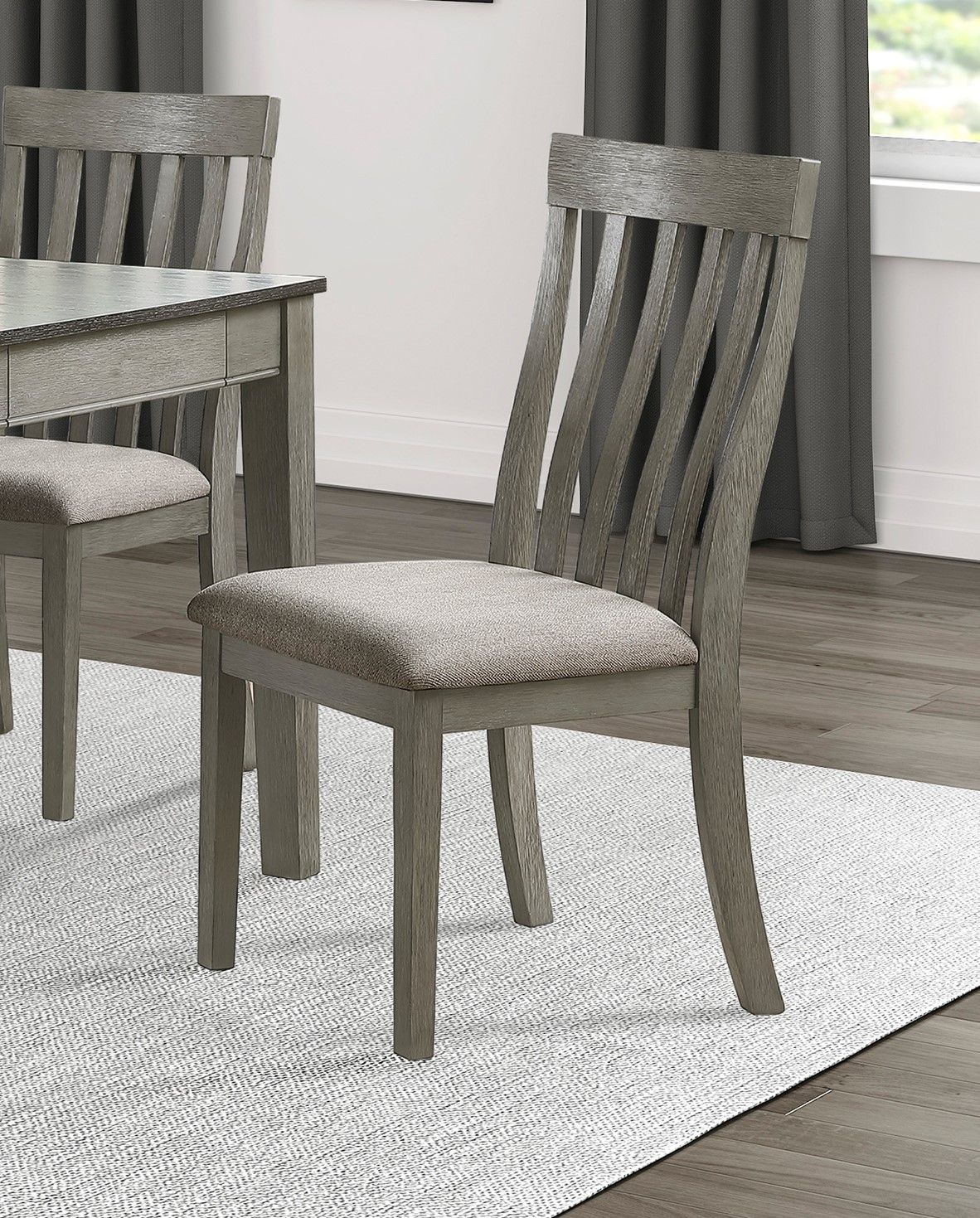 Dining Room Furniture Side Chairs 2pc Set Wire Brushed Light Gray Finish Vertical Slat Back Design Wooden Chairs Set