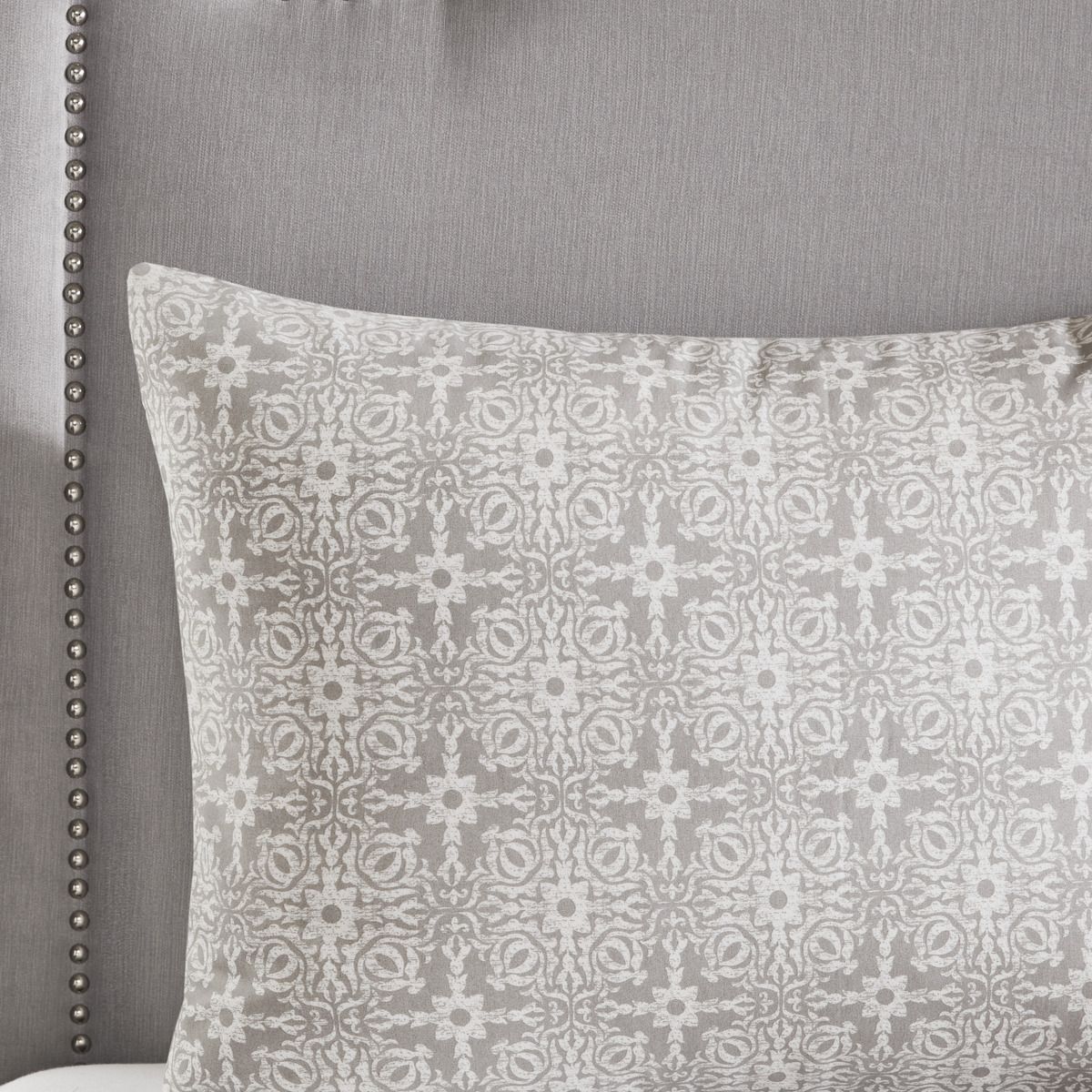 Style your bedroom with the shabby chic allure of the Malia 4 Piece Embroidered Cotton Reversible Duvet Cover Set. The face of the reversible duvet cover features tufted grey embroidery on an ivory base, while the reverse showcases an all-over grey medallion print that complements the top of the bed. Two matching shams mirror the face of the cotton duvet cover and an embroidered medallion design on the square decorative pillow provides an elegant finishing touch to the cotton duvet cover set. Machine washable for easy care, this reversible duvet cover set is made from 100% cotton and provides a comfortable shabby chic update to your bedroom décor. Button closures help secure a comforter insert within the duvet cover and four inside ties in the corners help prevent it from shifting (insert is NOT included). Items in the set may come in a rolled or compressed packaging, which will need to be fluffed up or steam ironed before use to remove wrinkles.