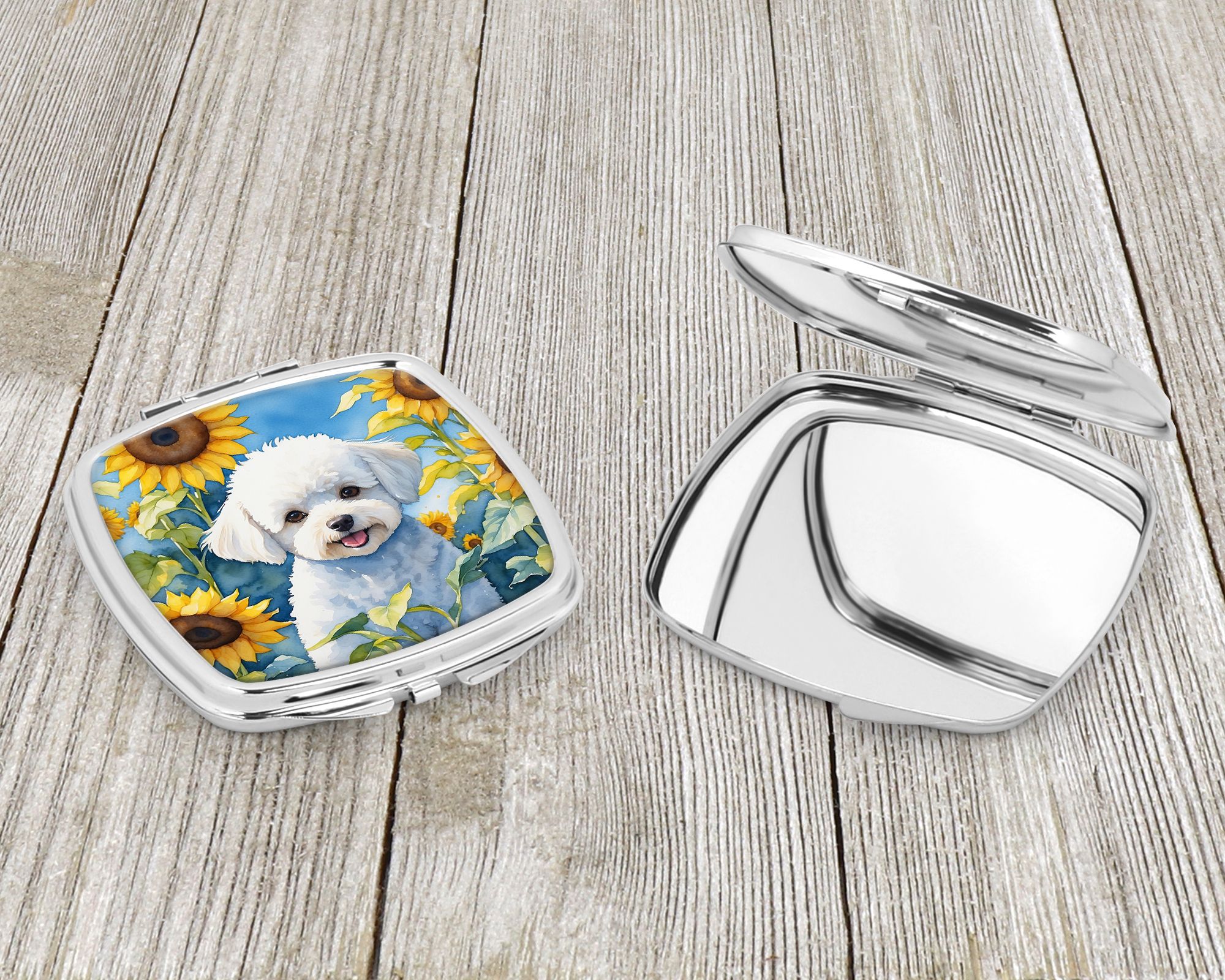 Home > Bichon Frise in Sunflowers Compact Mirror Decorative Travel Makeup Mirror for Women Girls Gifts Pocket Makeup Mirror Folding Handheld