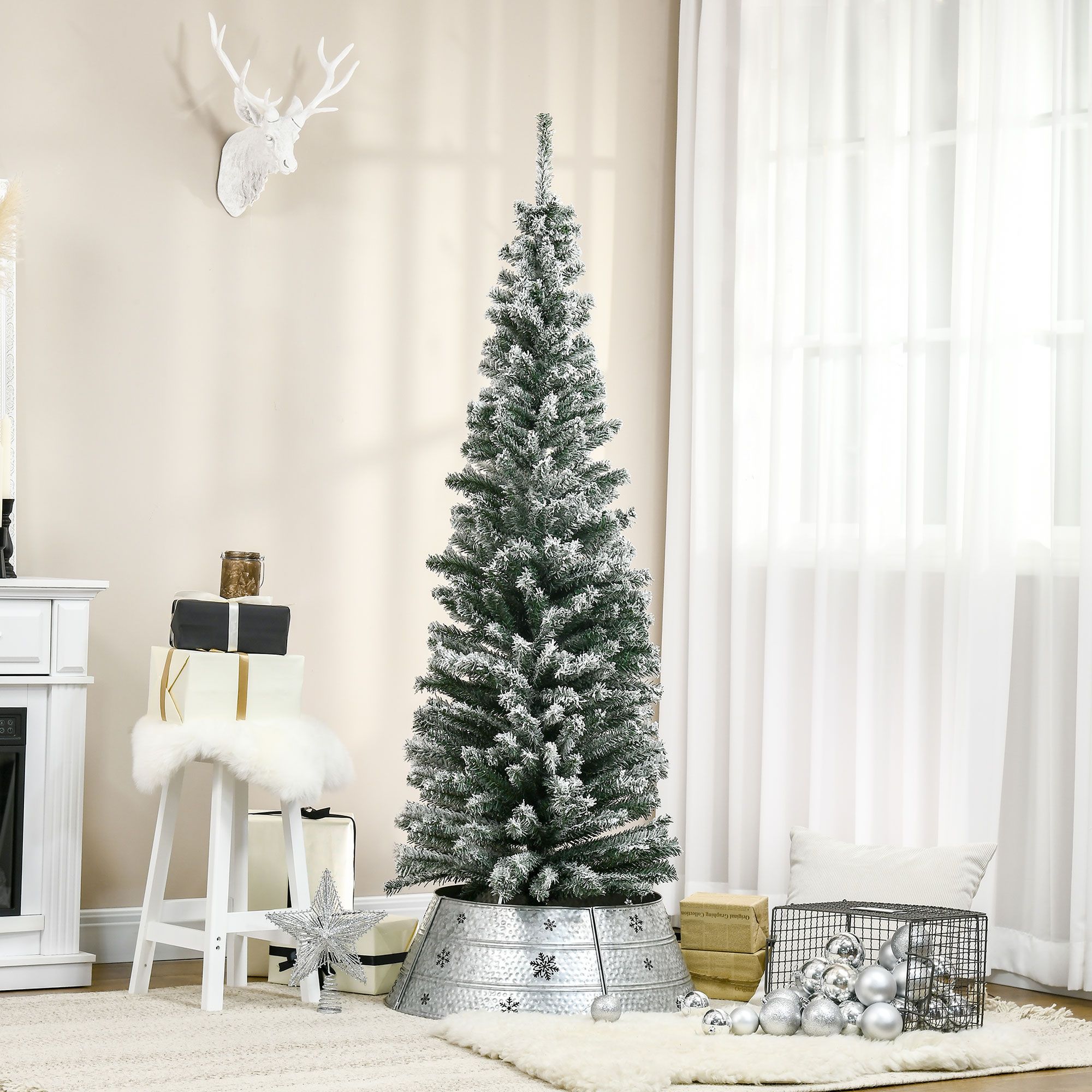 6' Tall Unlit Snow-Flocked Slim Artificial Christmas Tree with Realistic Branches and 492 Tips