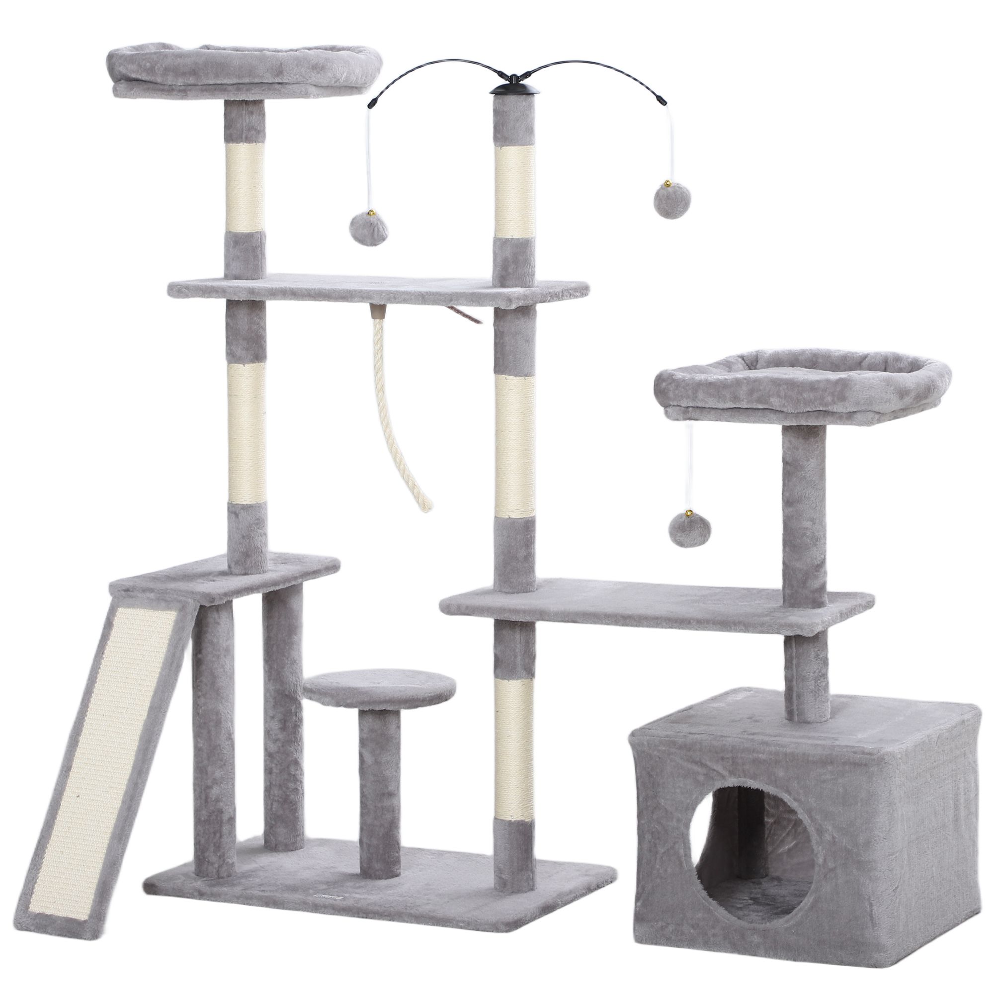 53" Cat Tree, Cat Tower with Scratching Posts, Cat Condo, Beds, Platforms, Toy Balls for Indoor Cats, Light Grey 53" Cat Tree, Cat Tower with Scratching Posts, Cat Condo, Beds, Platforms, Toy Balls for Indoor Cats, Light Grey 53" Cat Tree, Cat Tower with Scratching Posts, Cat Condo, Beds, Platforms, Toy Balls for Indoor Cats, Light Grey