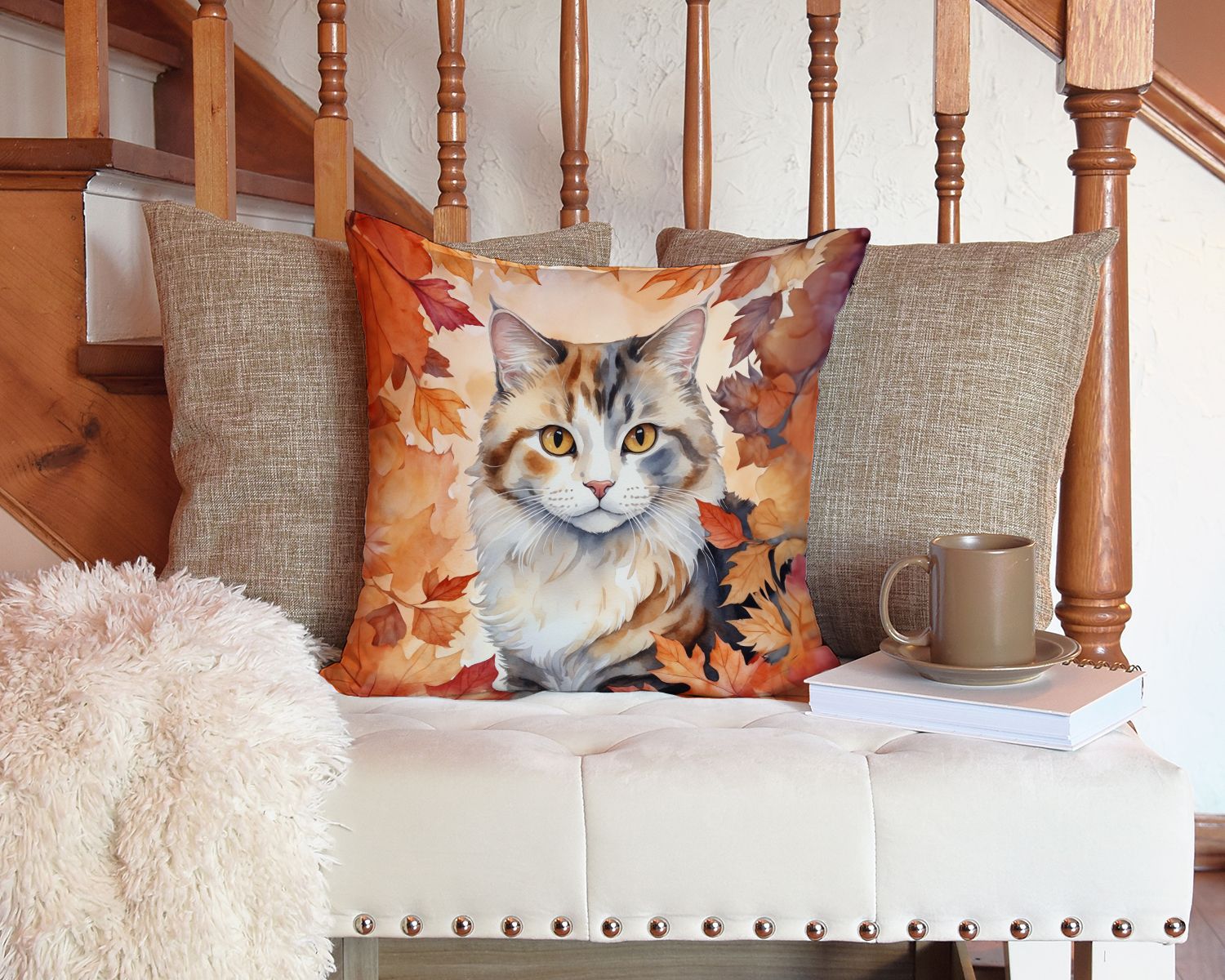 Home > American Curl Cat in Fall Leaves Throw Pillow Machine Washable, Indoor Outdoor Decorative Pillow for Couch, Bed or Patio, 14Hx14W