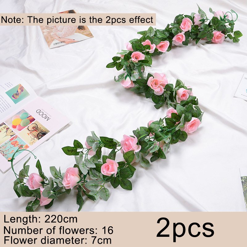 Home > 2pcs Rose Vine Flowers Garland Plant Artificial, Wall Hanging Flower Rattan Plant Leaf, Wedding, Home, Garden Decor