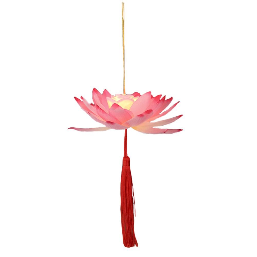 Portable Blossom Lotus Flower Light Lamp with Handle for Chinese Lantern Festival - Pink