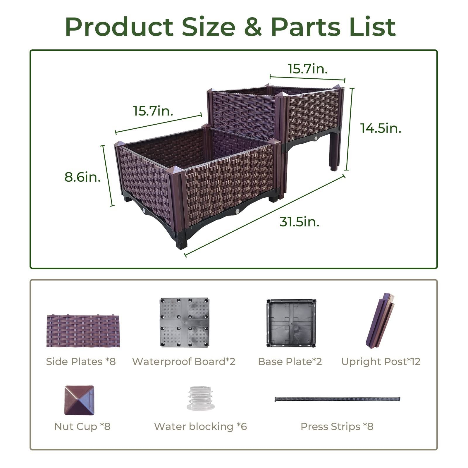Plastic Raised Garden Bed 2 Piece Planter Grow Boxes for Outdoor Indoor Plants Elevated Garden Boxes